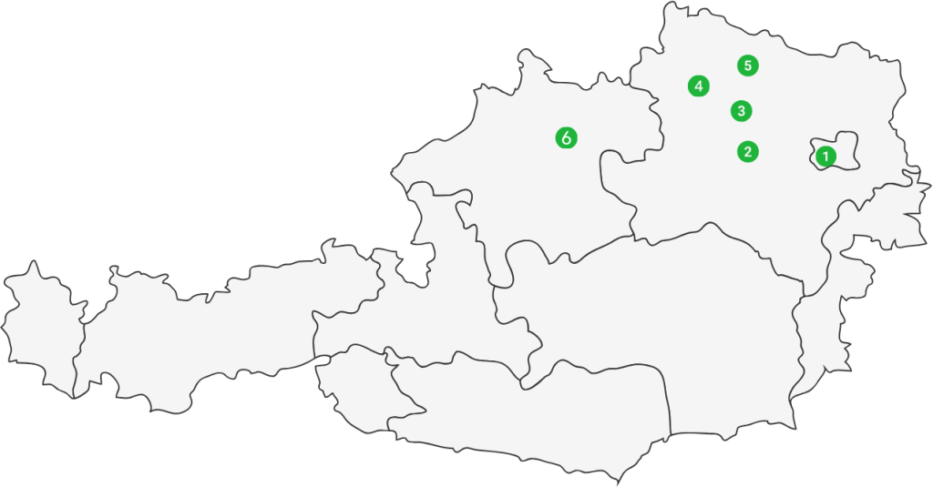 Persönliche Beratung und Betreuung haben in der Firmengruppe SCHMIED AG oberste Priorität. Deshalb haben wir in St. Pölten, Wien, Krems, Zwettl, Horn, und jetzt auch in Linz Niederlassungen, von denen aus wir unsere Kunden und Interessenten direkt betreuen. Klicken Sie auf den jeweiligen Standort, um mehr zu erfahren!